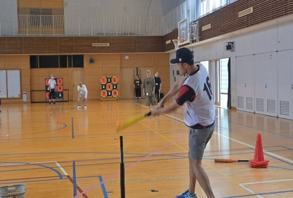 当連盟会長黒江透修(元プロ野球OB倶楽部代表)、当連盟顧問得津高広・上川誠二(ともに元千葉ロッテマリーンズ)によるバッティング・守備の指導を受け、ドカッとたくさんの点が入る「どか点ゲーム」をしてティーボールを楽しみました。また、参加者はティーボールの成り立ちやルールにも触れました。今後はそれぞれのフィールドで野球型のスポーツの楽しさを伝えていくことでしょう。【令和4年10月23日更新】